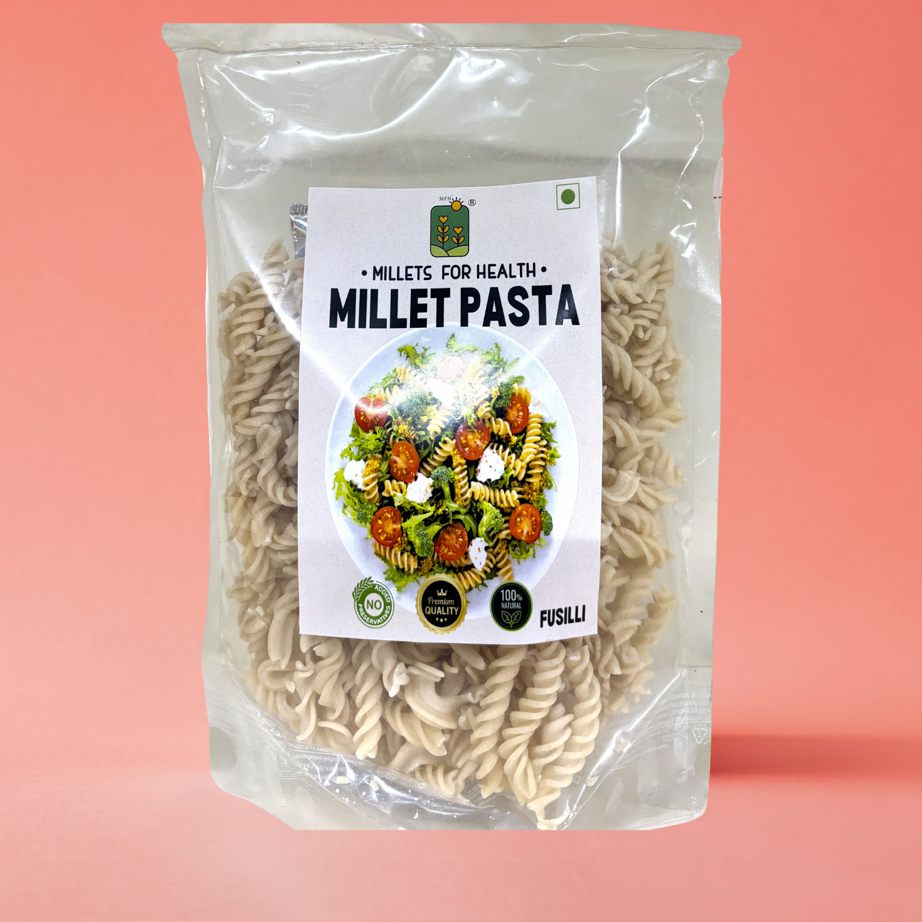 Twist up your next meal with our fun and flavorful Millet Fusilli pasta! This isn’t just a healthier swap—it’s a delicious meal the whole family will love. Being completely maida-free, every spiral is packed with wholesome goodness. Get ready for a yummy, guilt-free pasta night!